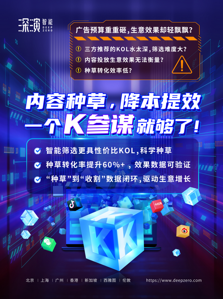 摇钱树娱乐智能K参谋科学前选,可跨领域找到最能影响品牌目标TA人群的KOL进行投放,同时有效平衡投资回报率;内容营销数据可同电商后链路平台打通,进行数据归因分析,准确判断KOL影响的用户是否真实在电商平台产生购买行为;实现“种草”到“收割”链路闭环,轻松内容营销,可根据品牌方的业务需求提供一站式的KOL采买及数据验证服务,有利提升整体内容营销的效率与效果。